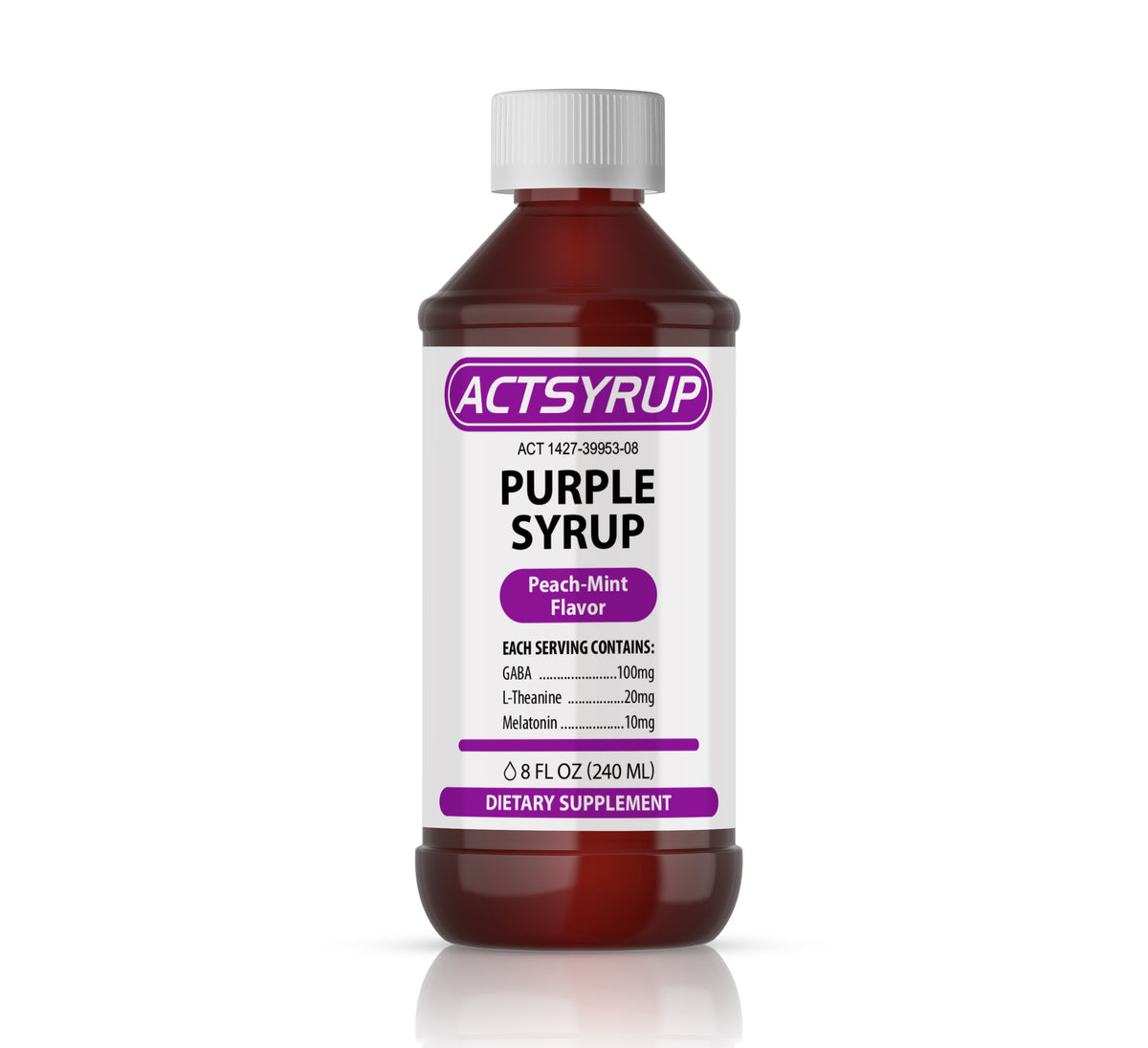 Actsyrup is a darker color purple syrup with a peach-mint flavor!