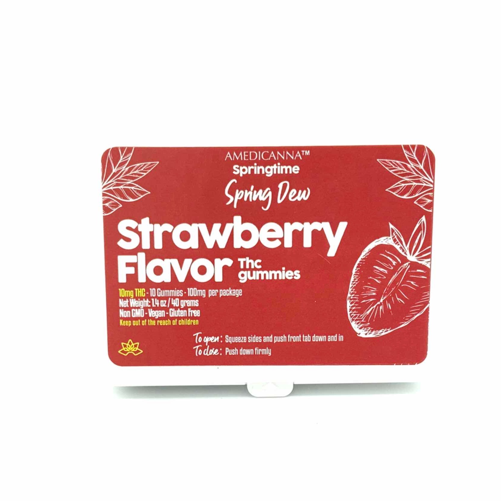 Get details and read the latest customer reviews about Strawberry Gummies 100mg 10-pack by Amedicanna on Leafly.