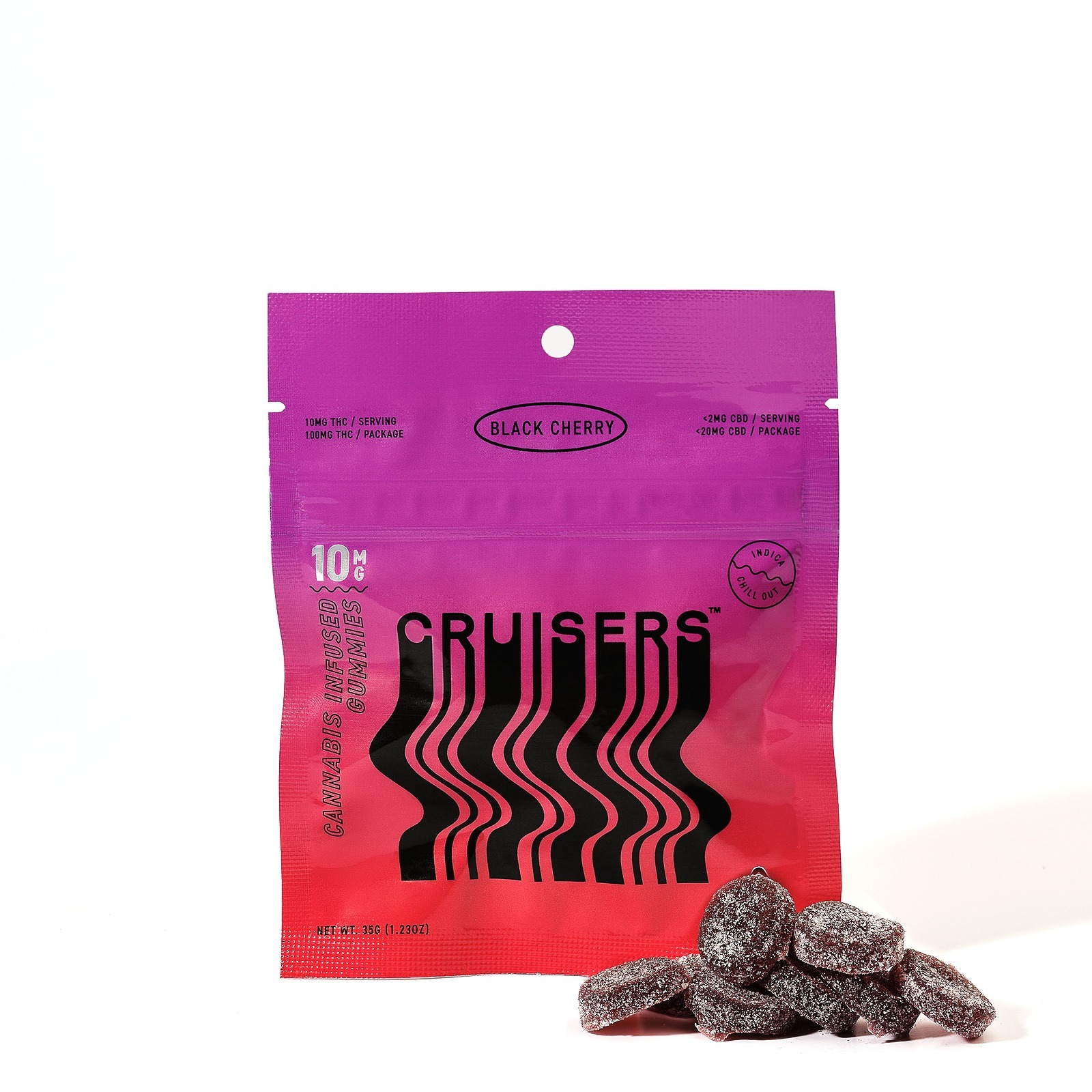 Get details and read the latest customer reviews about Black Cherry Indica [10pk] (100mg) by Cruisers on Leafly.