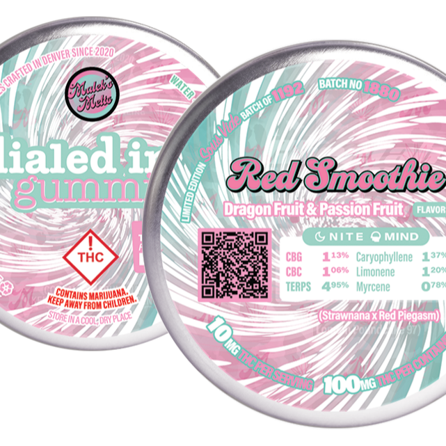 Get details and read the latest customer reviews about Red Smoothie [Batch #1880] Dragon Fruit & Passion Fruit Flavors | 100mg by Dialed In… Gummies on Leafly.
