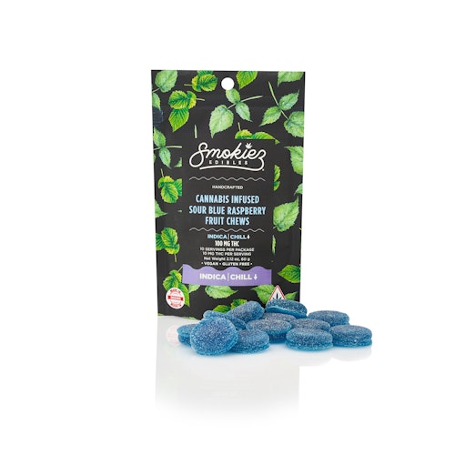Smokiez Edibles: Smokiez INDICA Sour Blue Raspberry Fruit Chews – 100mg 10pk – Maine | Leafly