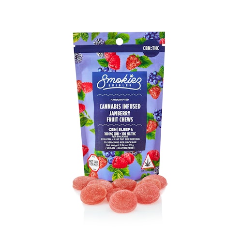 Smokiez Edibles: Smokiez Jamberry 100mg CBN : 100mg THC 1:1 Fruit Chews – Massachusetts | Leafly