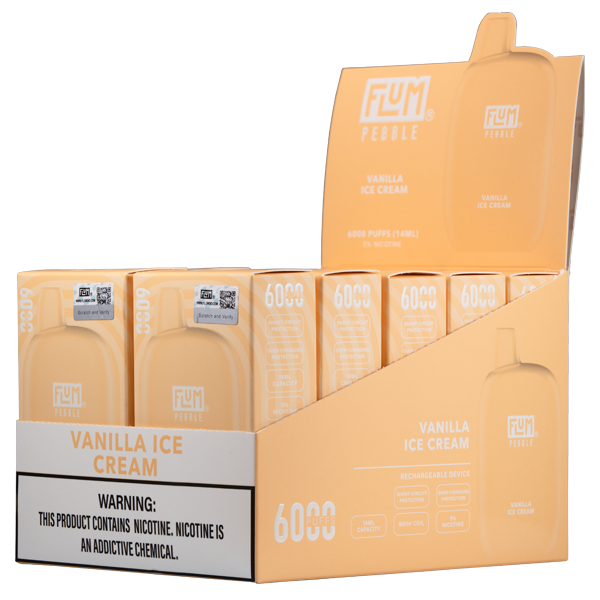 Flavor: The Vanilla Ice Cream Flum Pebble disposable vape has creamy french vanilla ice cream taste. The ergonomic design of the Flum Pebble fits easily in your palm and is prefilled with 14ml of quality vape juice.