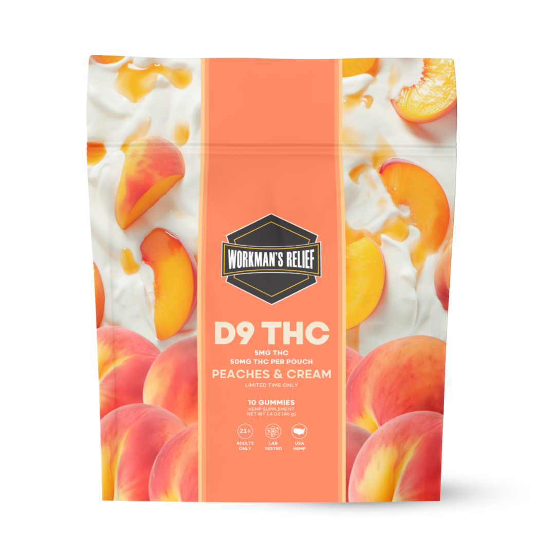 Workman’s Relief: D9 5mg Peaches & Cream THC Gummies – 10ct – 50MG By Workmans Relief | Leafly